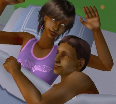 And I really didn't plan on the vampire thing. At least not this soon. Samantha was feeling lonely one night so she called up the count for a date. I only left my eyes off them for a minute to put Ian to bed, I swear, and boom!Points this round:- 6 for 6 new sims: Mandy, Celia, Samantha, Kevin, Malcom and Ian